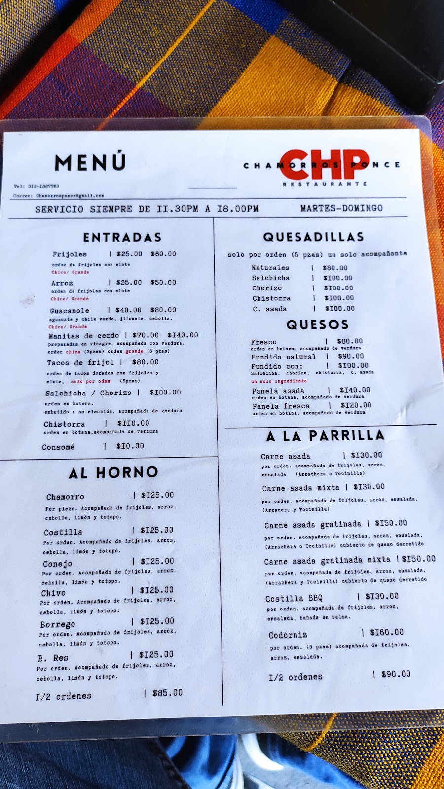 Chamorros Ponce es un restaurante ubicado en Coquimatlán, dentro del Parque Industrial de Colima, que ofrece una variedad de platillos tradicionales mexicanos con un enfoque en carnes y cortes tÃpicos. Con una calificación de 4.2 sobre 5 basada en 48 reseñas, es un lugar reconocido por su oferta gastronómica local, aunque algunos clientes han señalado que el servicio puede ser mejorable y que las porciones a veces son pequeñas. El ambiente es sencillo y adecuado para quienes buscan una experiencia auténtica y casual. Chamorros Ponce es ideal para quienes desean disfrutar de sabores regionales en un entorno accesible, aunque es recomendable estar preparados para tiempos de espera y atención variable. Para más información o reservas, se puede contactar al teléfono 312 138 7780 o visitar su página de Facebook.