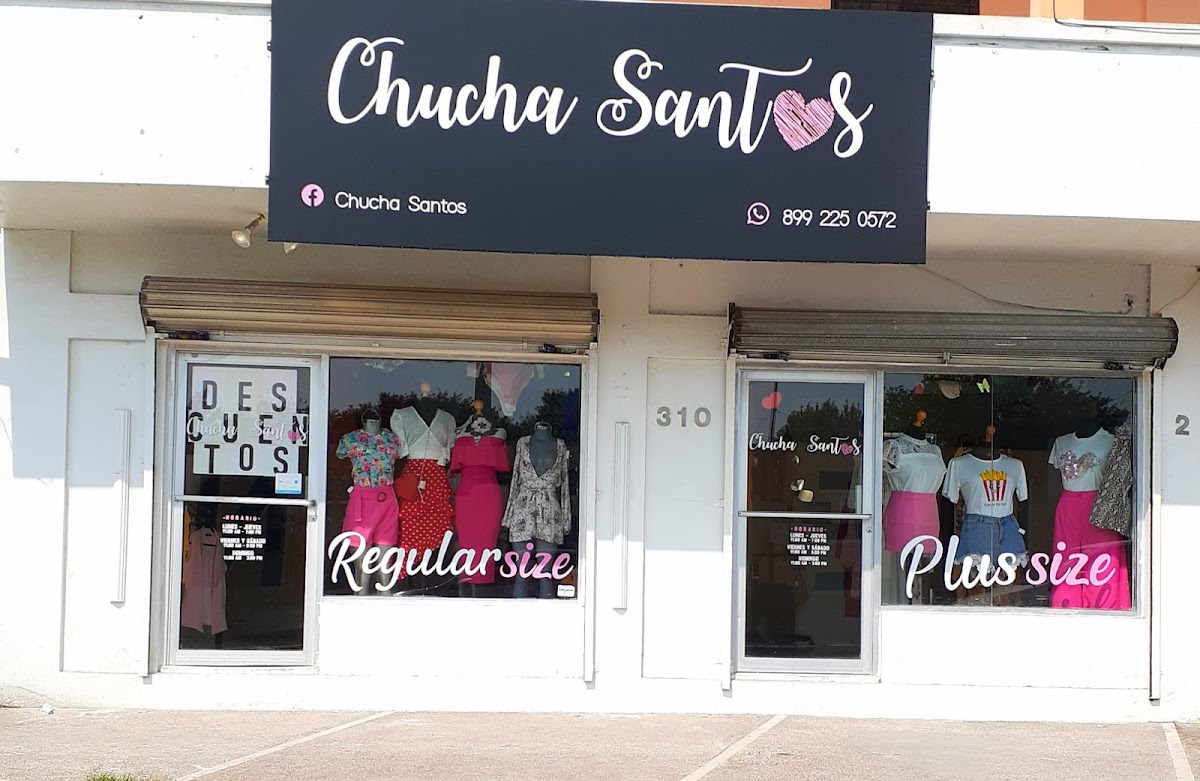 Chucha Santos — Ropa Ubicado en Reynosa. Horario: lunes: 11:00–19:00; martes: 11:00–19:00; miércoles: 11:00–19:00; jueves: 11:00–19:00; viernes: 11:00–19:00; sábado: 11:00–19:00; domingo: 11:00–15:00 | Calificación: 4.6 (42 opiniones) Sitio web: https://www.chuchasantos.com/