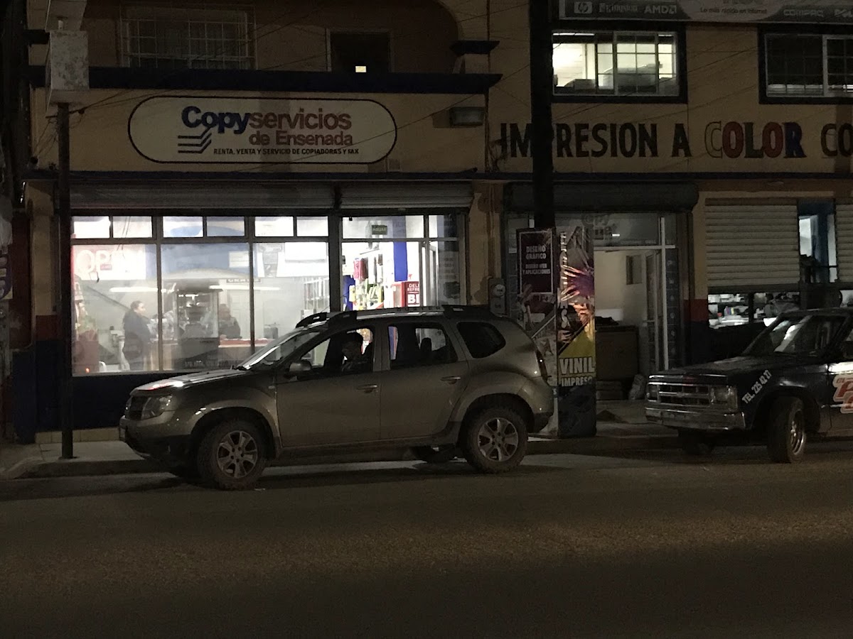 Copy Servicios de Ensenada — Fotocopiado Ubicado en Ensenada. Horario: lunes: 8:00–18:30; martes: 8:00–18:30; miércoles: 8:00–18:30; jueves: 8:00–18:30; viernes: 8:00–18:30; sábado: 8:00–14:30; domingo: Cerrado | Calificación: 4.4 (295 opiniones) Sitio web: https://www.copyserviciosdeensenada.com/