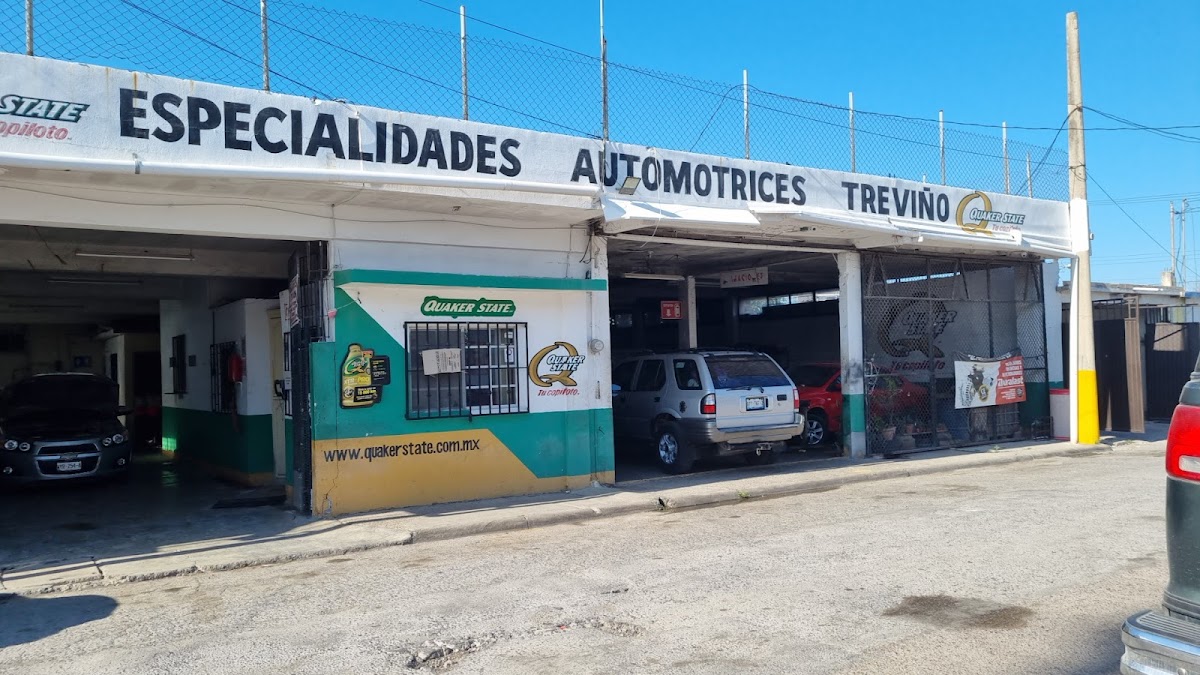 Especialidades Automotrices Treviño — Taller Mecánico Ubicado en Heroica Matamoros. Horario: lunes: 8:00–17:00; martes: 8:00–17:00; miércoles: 8:00–17:00; jueves: 8:00–17:00; viernes: 8:00–17:00; sábado: 8:00–14:00; domingo: Cerrado | Calificación: 4.4 (74 opiniones)