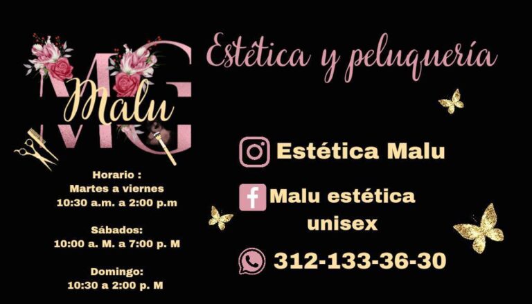 Estética Unisex Malu es un salón de belleza ubicado en Elegir, Colima, que ofrece servicios profesionales para el cuidado y embellecimiento personal tanto para hombres como para mujeres. Situado en Constitución #305, junto al depósito Ortega en Aguajitos, este establecimiento se destaca por su atención personalizada y calidad en cada tratamiento. Con una calificación perfecta de 5 estrellas basada en opiniones reales, Estética Unisex Malu se ha consolidado como un punto de referencia en la comunidad local para quienes buscan cortes de cabello, peinados, tratamientos capilares y otros servicios estéticos. Su equipo de profesionales utiliza técnicas modernas y productos de calidad para garantizar resultados que satisfacen las expectativas de sus clientes. Además, su ambiente acogedor y sus precios competitivos hacen que la experiencia sea agradable y accesible. Para más información, reservas o consultas, puedes visitar su sitio web https://directoriocolima.com o comunicarte al teléfono 312 133 3630. Estética Unisex Malu es la opción ideal para quienes desean realzar su imagen en un entorno confiable y profesional en Elegir, Colima.