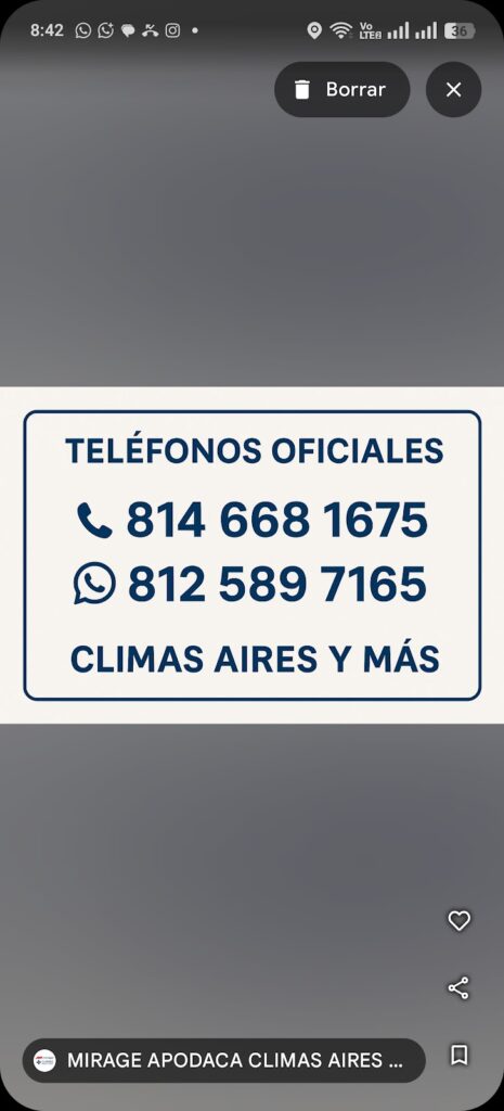 MIRAGE APODACA CLIMAS AIRES Y MAS — Técnico De Aire Acondicionado Ubicado en Ciudad Apodaca. Horario: lunes: 9:00–18:00; martes: 9:00–18:00; miércoles: 9:00–18:00; jueves: 9:00–18:00; viernes: 9:00–18:00; sábado: 9:00–14:00; domingo: 10:00–13:00 | Calificación: 4.8 (21 opiniones) Sitio web: https://www.facebook.com/share/1YV55ta8yh/