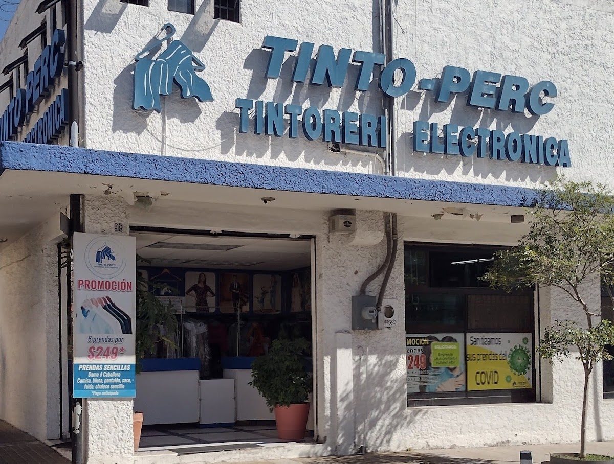 Tinto-Perc Tintoreria Electrónica — TintorerÃa Ubicado en Zapopan. Horario: lunes: 9:00–19:00; martes: 9:00–19:00; miércoles: 9:00–19:00; jueves: 9:00–19:00; viernes: 9:00–19:00; sábado: 9:00–17:00; domingo: Cerrado | Calificación: 3.9 (63 opiniones)